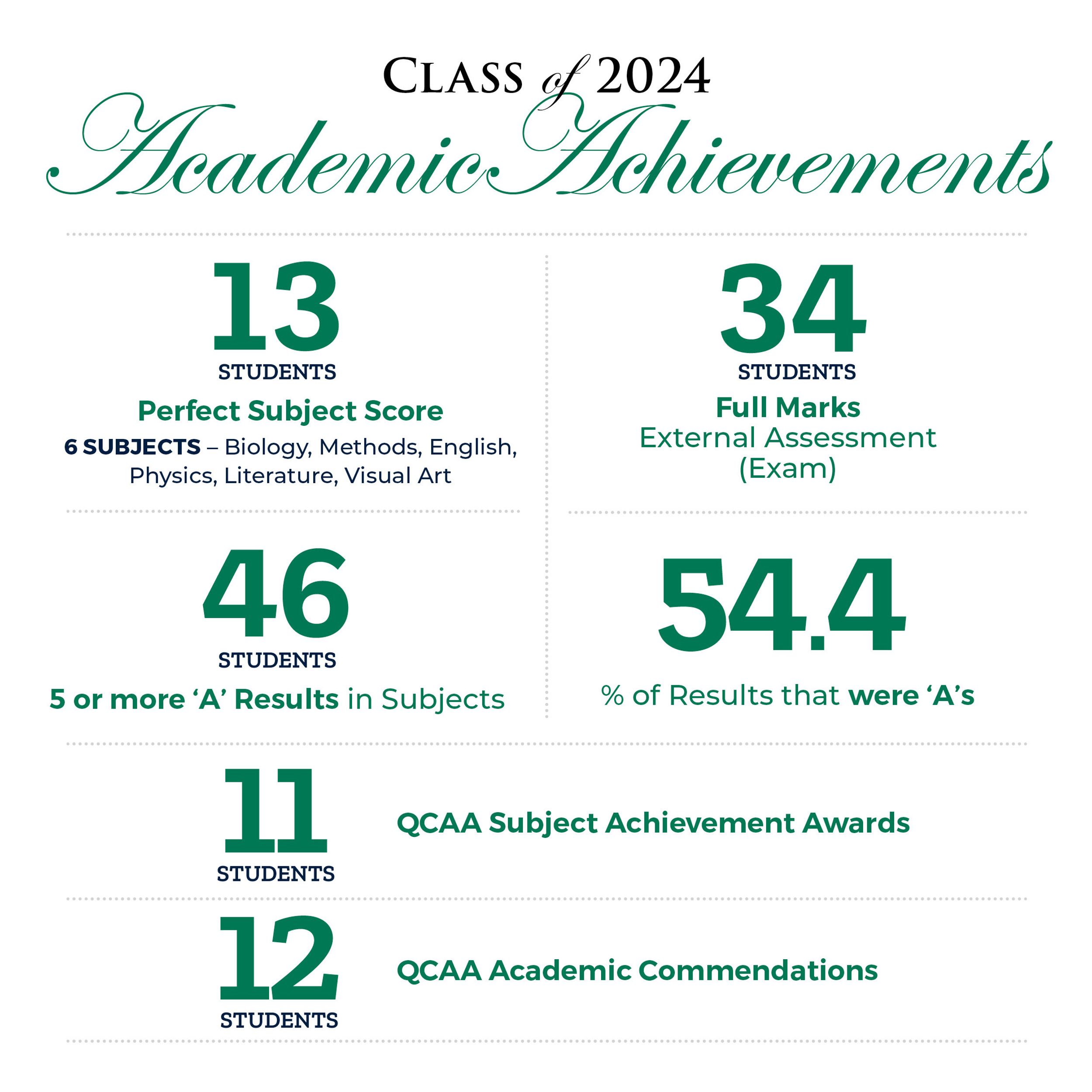 We are proud to share the outstanding academic achievements of the Class of 2024 and acknowledge their unwavering commitment and determination in all aspects of school life.