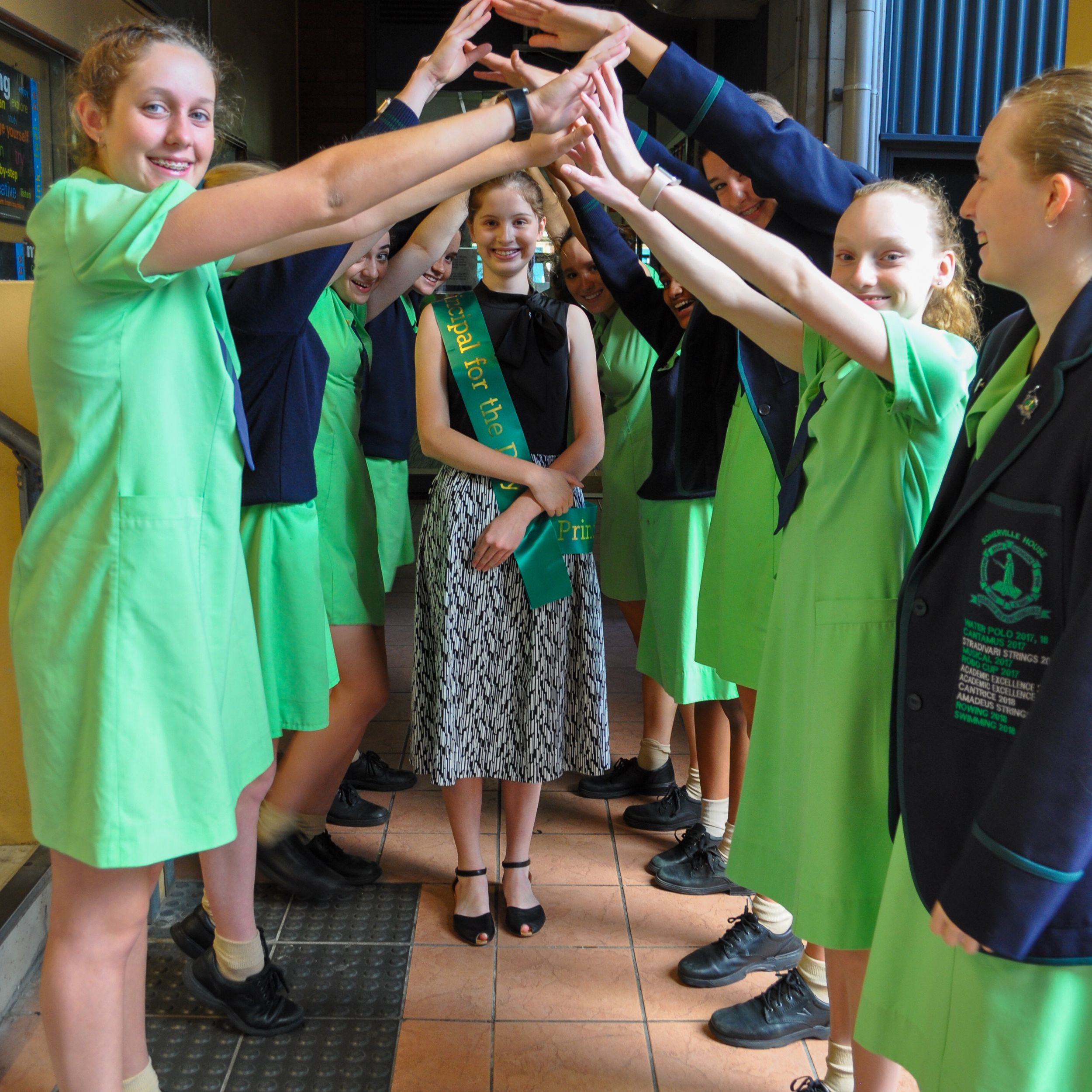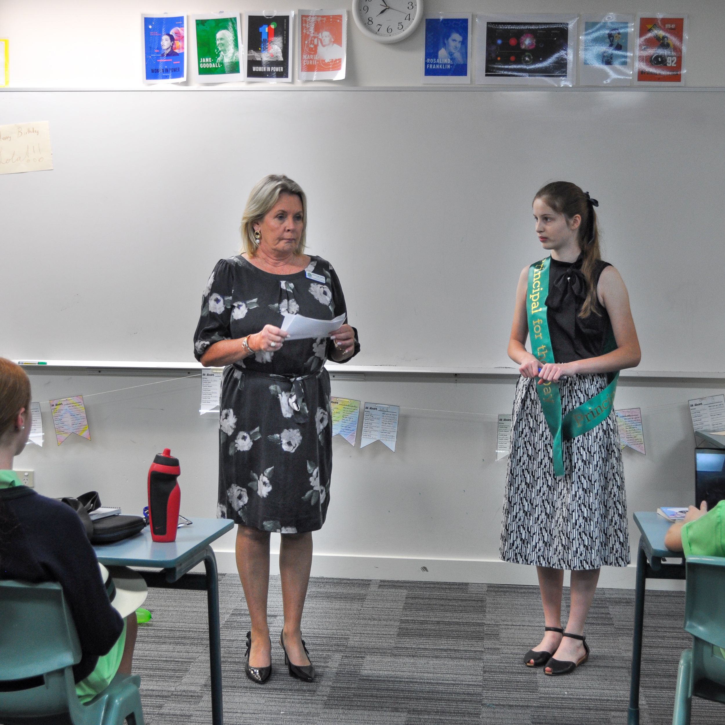 Upon donning her ceremonial green ‘Principal for the Day’ sash, Principal Verity’s first official duty was to visit a class during Tutor Group, something Principal Kiepe takes great delight in every school week. Opting to visit her own Tutor Group to wish a fellow classmate a happy birthday, Principal Verity and Principal Kiepe also played the game ‘Word of the Day’ where they tested the students’ knowledge of the word ‘embellish’.
