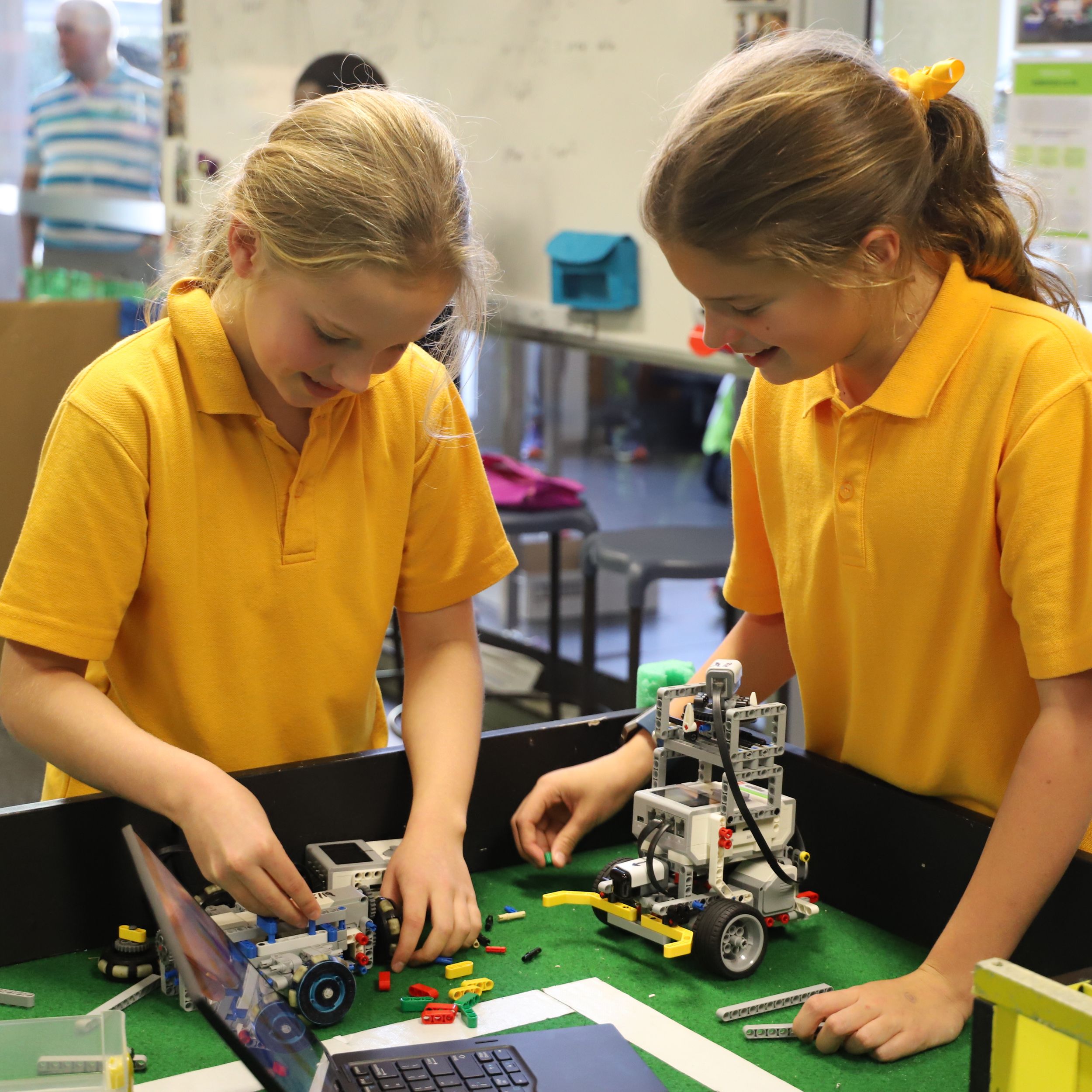 Year 6 students Grace and Sarah showed off their Soccer robot.