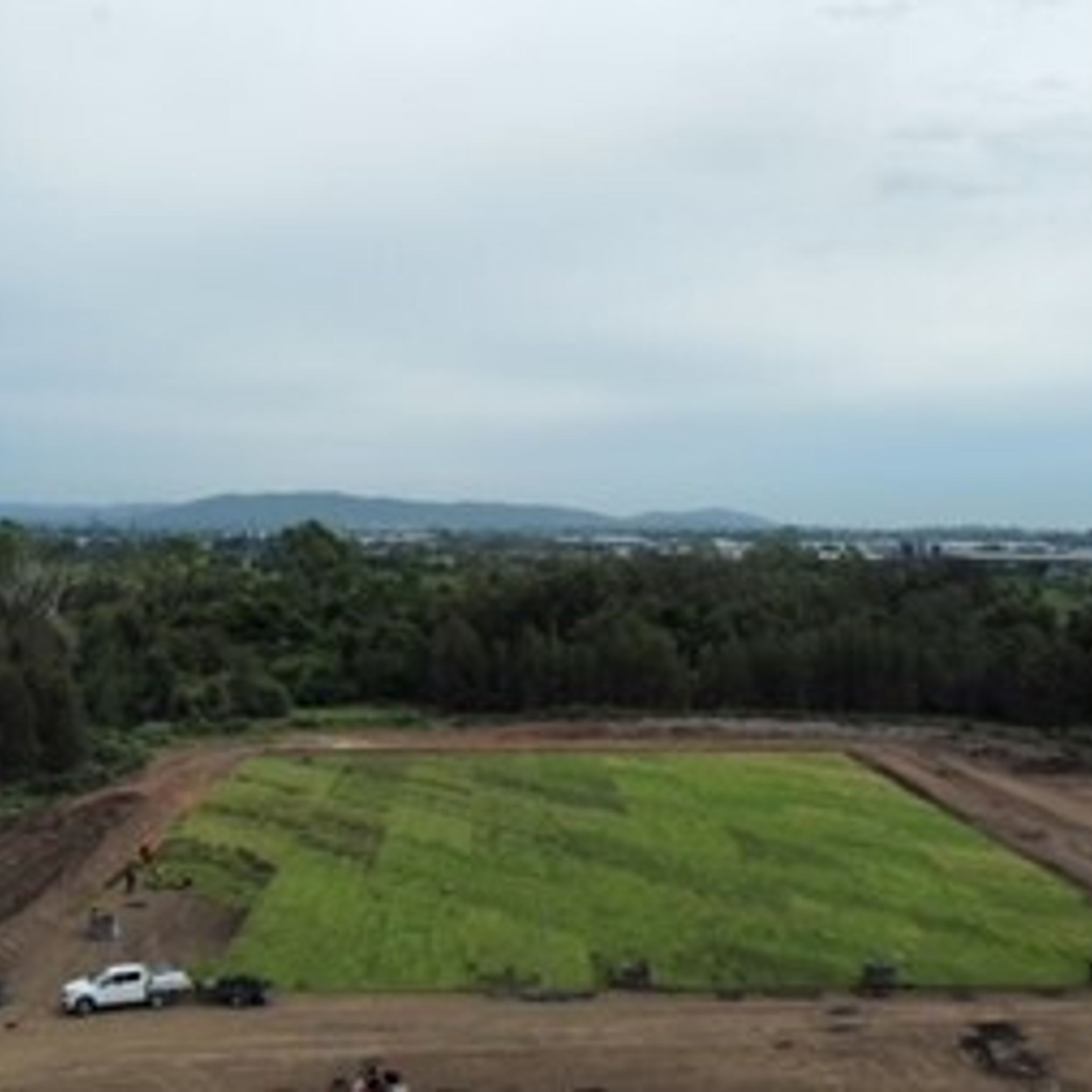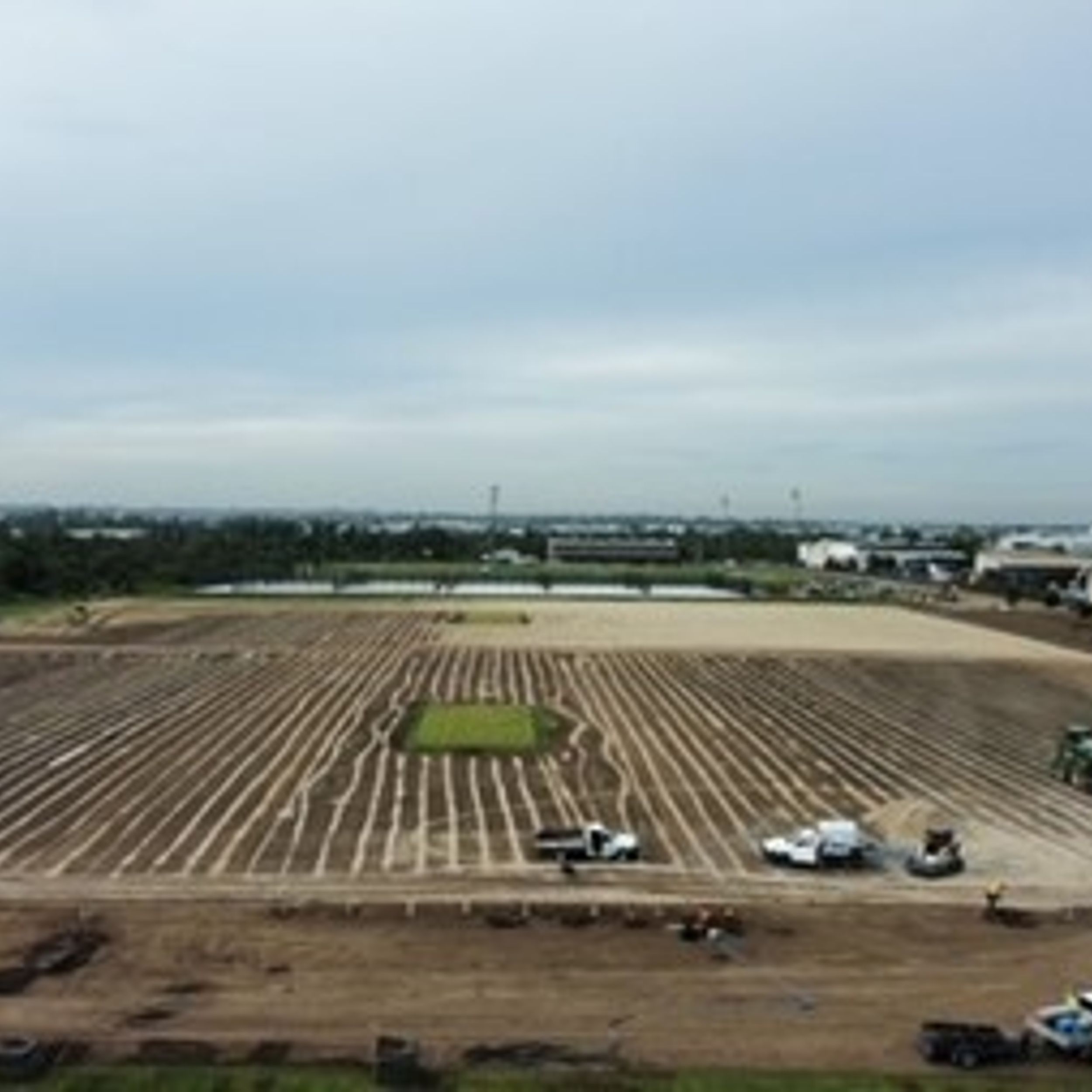 - Another view of turf laying in progress